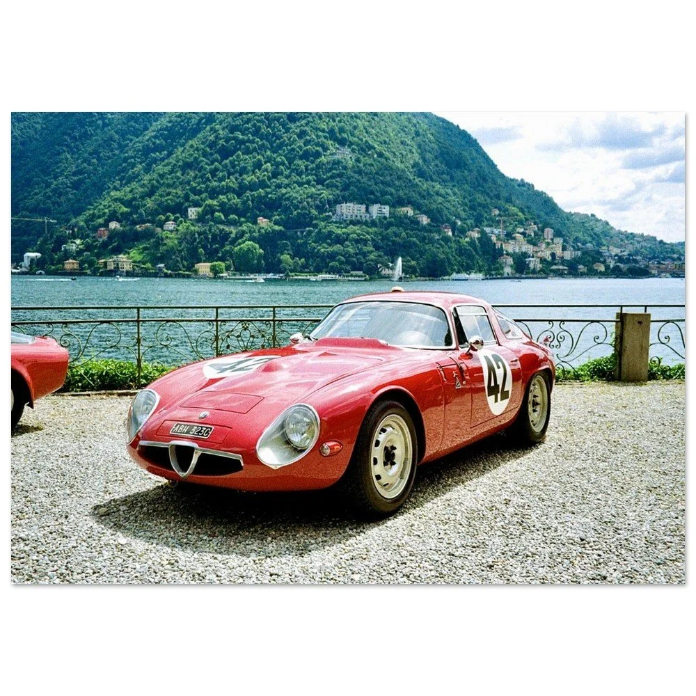 The beautiful Alfa Romeo Giulia TZ Shot on 35mm film in Lake Como, Italy, during Como Car Week Printed on premium semi gloss paper for a rich photographic finish Available worldwide Printed and shipped locally for faster delivery Sales Final